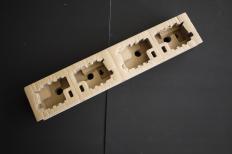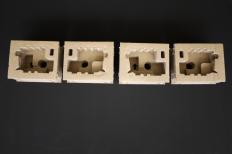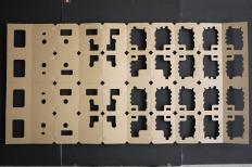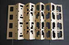 段ボールの原紙をCFG製造機に通すと、まずCADデータ通りに型抜きされた状態で出てきます。